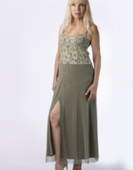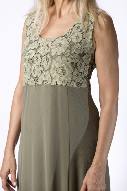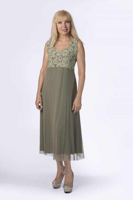 שמלה משולבת משלושה בדים: ניאון גמיש, תחרה ושיפון לייקרה. אלגנטית לאירועים